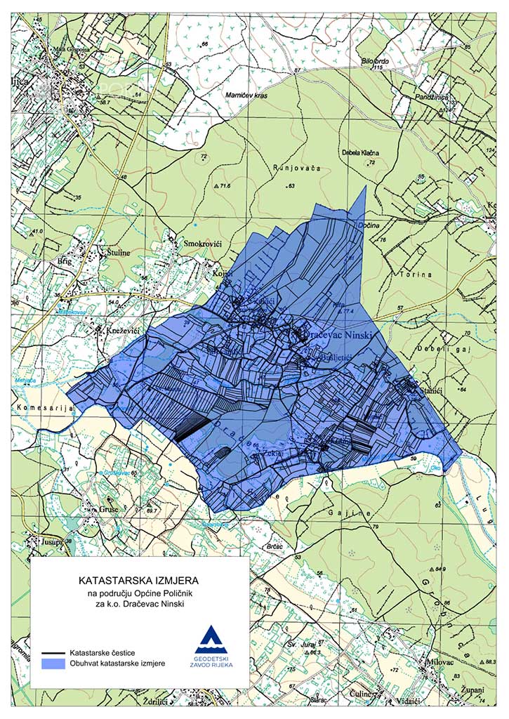 Obavještavamo Vas da su Odlukom Državne geodetske uprave o katastarskoj izmjeri na području Općine Poličnik za katastarsku općinu Dračevac Ninski i dio katastarske općine Suhovare započeli radovi na projektu provođenja katastarske izmjere i obnove zemljišnih knjiga temeljem Godišnjeg programa katastarskih izmjera građevinskih područja za 2022. godinu.